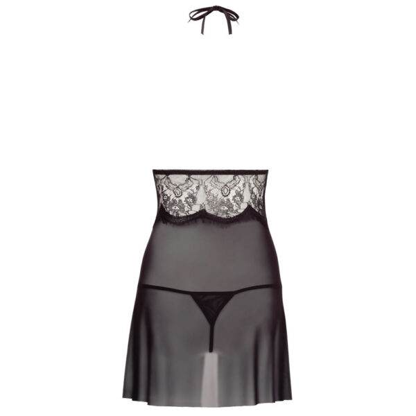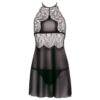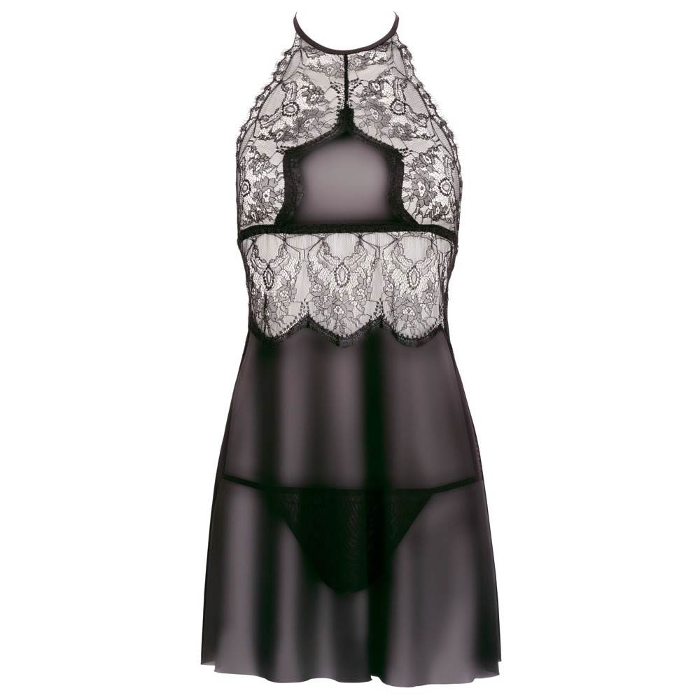 Negligéet er med halterneck til at binde og blondeindsatsen fortsætter under rygudskæringen.