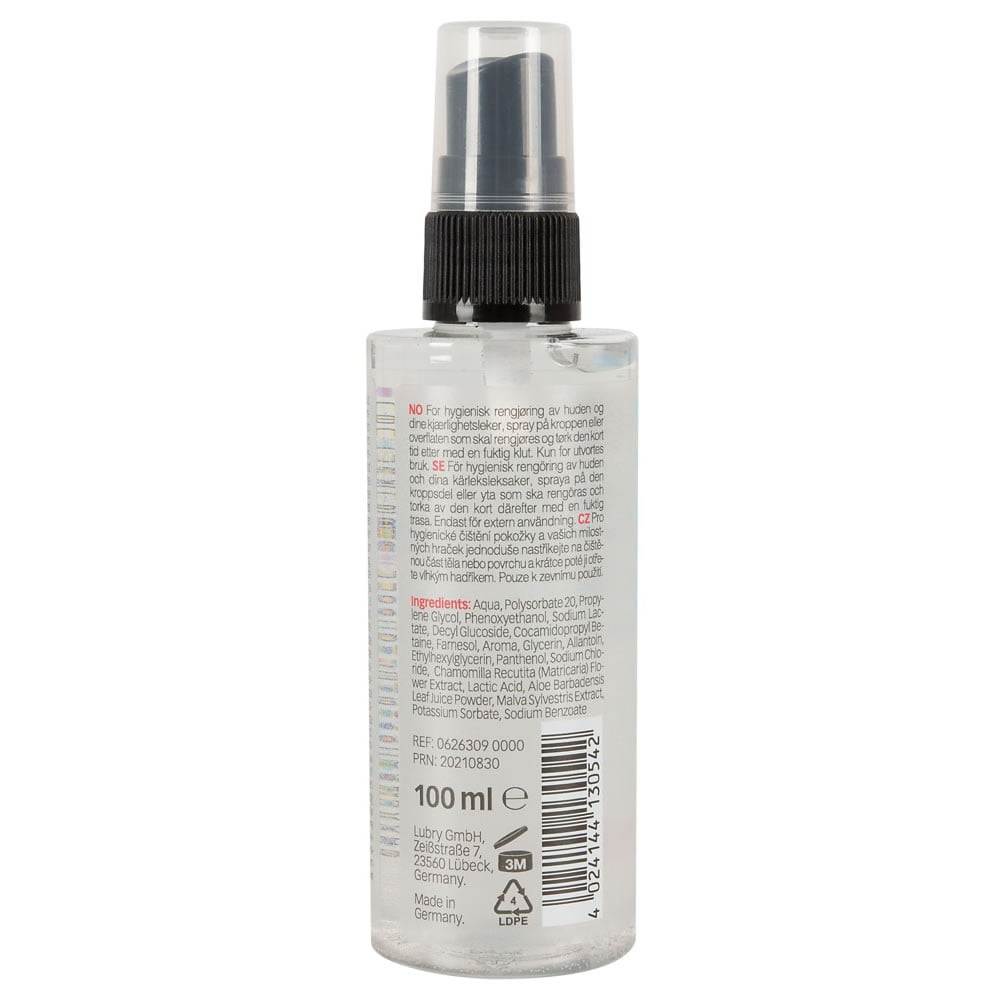 2in1 Clean fra Just Play renser forsigtigt både kønsområdet og lovetoys. Den alkohol- og duftfrie opskrift indeholder blandt andet mave- og kamilleekstrakt samt hudplejende aloe vera. Spray på legetøjet, lade det virke kortvarigt og tør derefter af med en fugtig, ren klud. Vegansk. 100 ml. ORIGINAL dermatest MEGET GOD 09/2021. Kun til yderlig anvendelse.