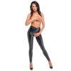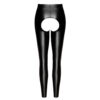 - Snit og materiale: Sorte leggings i wetlook med høj linning.