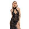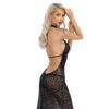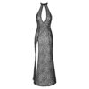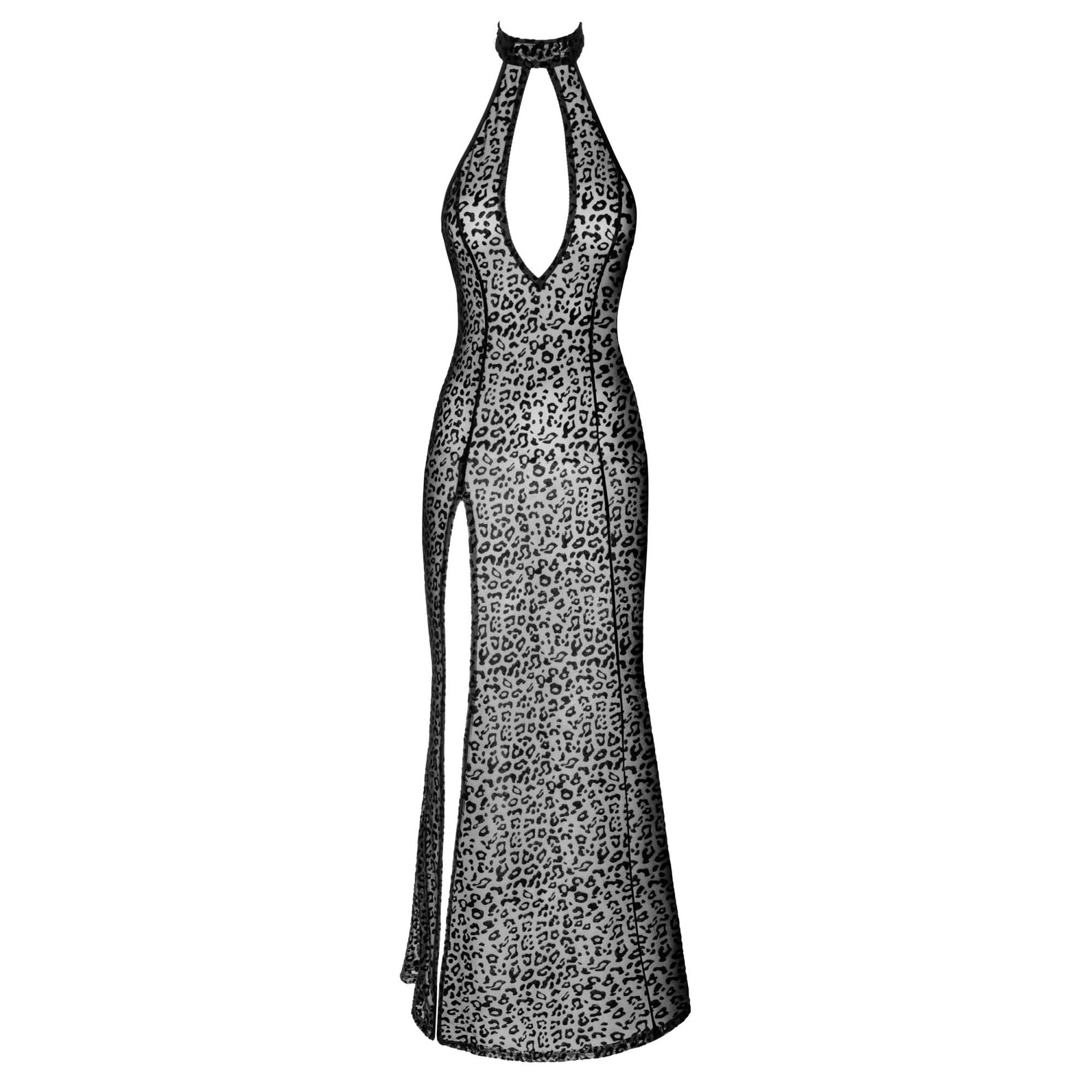 Lang off-the-shoulder-kjole fra Noir helt fremstillet af elastisk, blødt powernet med fint fløjlsprint i leo look. Dyb nøglehulshalsudskæring foran under den lille opstående krave med kroglukning. Spændende slids ned til hofterne. I ryggen er der fri op til bunden med smalt elastikbånd for et sikkert greb. 90% polyester, 10% elastan.Der findes en separat størrelsestabel for Noir.Levering uden trusser/snor.