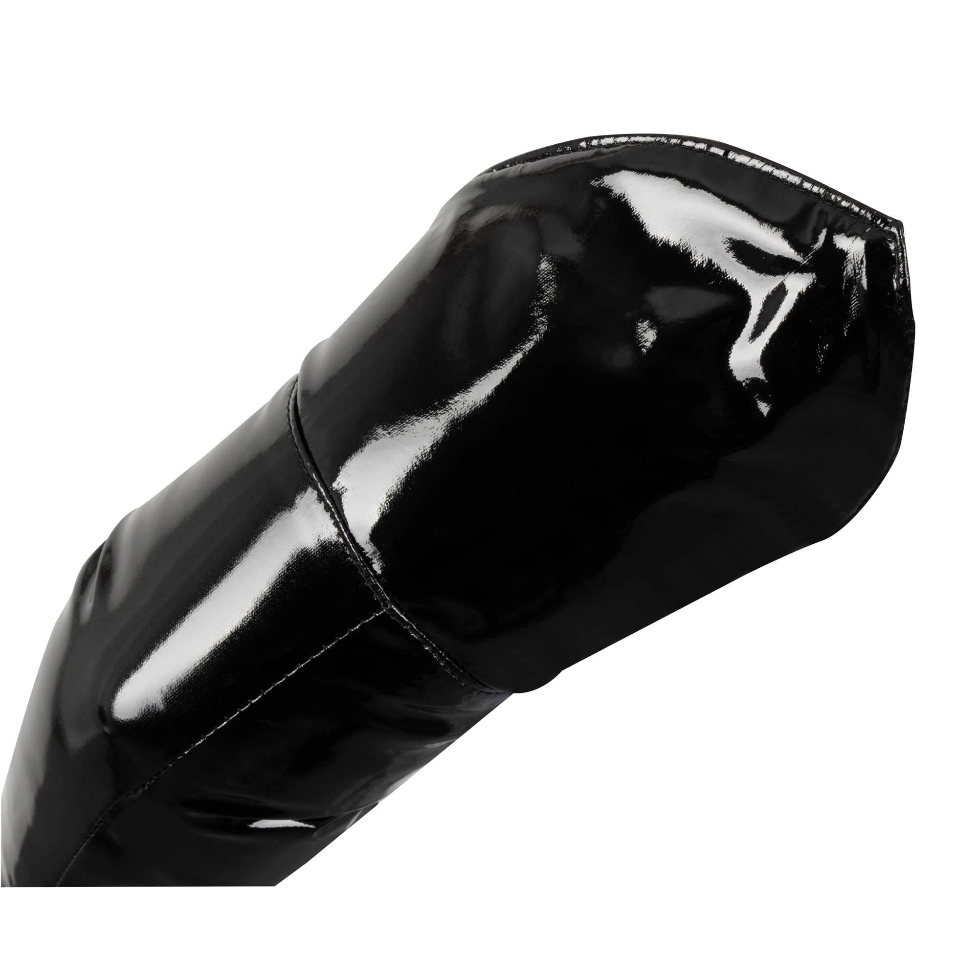 Super ædelt: Ekstra lange, sorte lak-handsker! Damestørrelser. 50% Polyester, 50% Polyurethan.