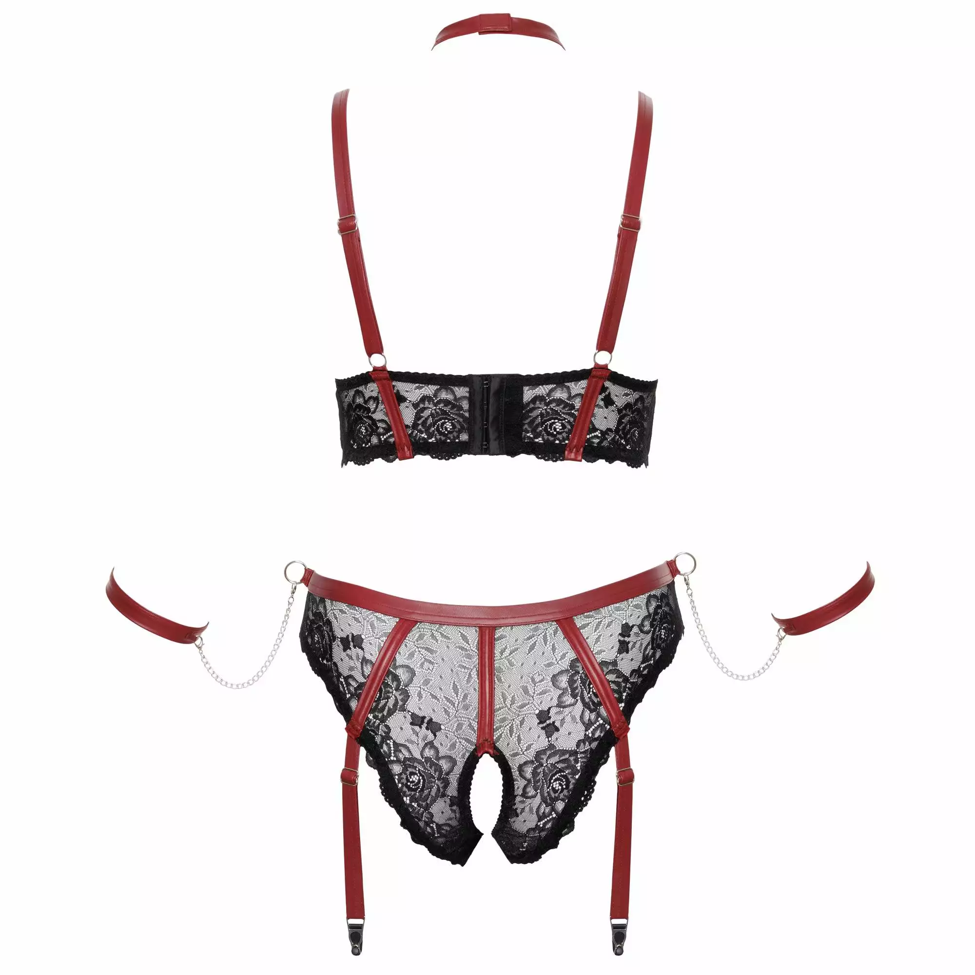 Dekorativ, praktisk og meget erotisk er den omhyggeligt indbyggede 3-vejslynlås bagpå, som går gennem skridtet til fronten og kan åbnes variabelt.